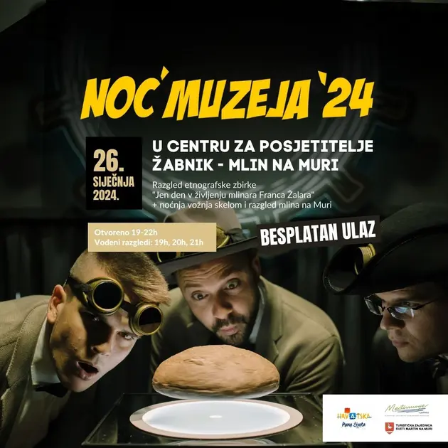 Doživite čaroliju povijesti i kulture u prekrasnom Svetom Martinu na Muri tijekom posebne Noći muzeja! Ulaz u Centar za posjetitelje Žabnik - Mlin na Muri bit će besplatan za sve posjetitelje i otvoren od 19 do 22 sata. Posjetitelji će imati mogućnosti razgledati bogatu etnografsku zbirku Centra i uroniti u "Jen den v življenju mlinara Franca Žalara" - posebnu izložbu koja vas vodi kroz život i rad mlinara.