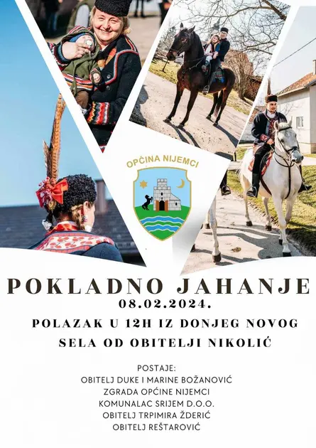 Običaji kažu da su konji u prošlosti bili manje okićeni, no tradiciju i dalje treba čuvati i održavati. U vrijeme poklada, Pokladno jahanje se tradicionalno održava na području cijele Slavonije, Baranje i Srijema, pa tako ne zaobilazi ni područje Općine Nijemci.