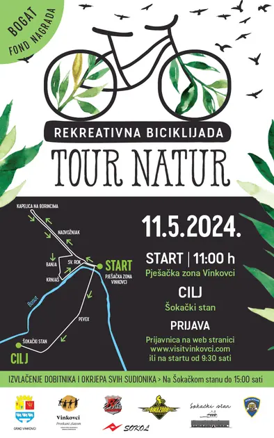 Turistička zajednica grada Vinkovaca poziva vas da se prijavite na rekreativnu biciklijadu “Tour natur” gdje vam i ove godine nude laganu vožnju, uživanje u krajoliku, ugodno društvo i, naravno, pregršt nagrada.