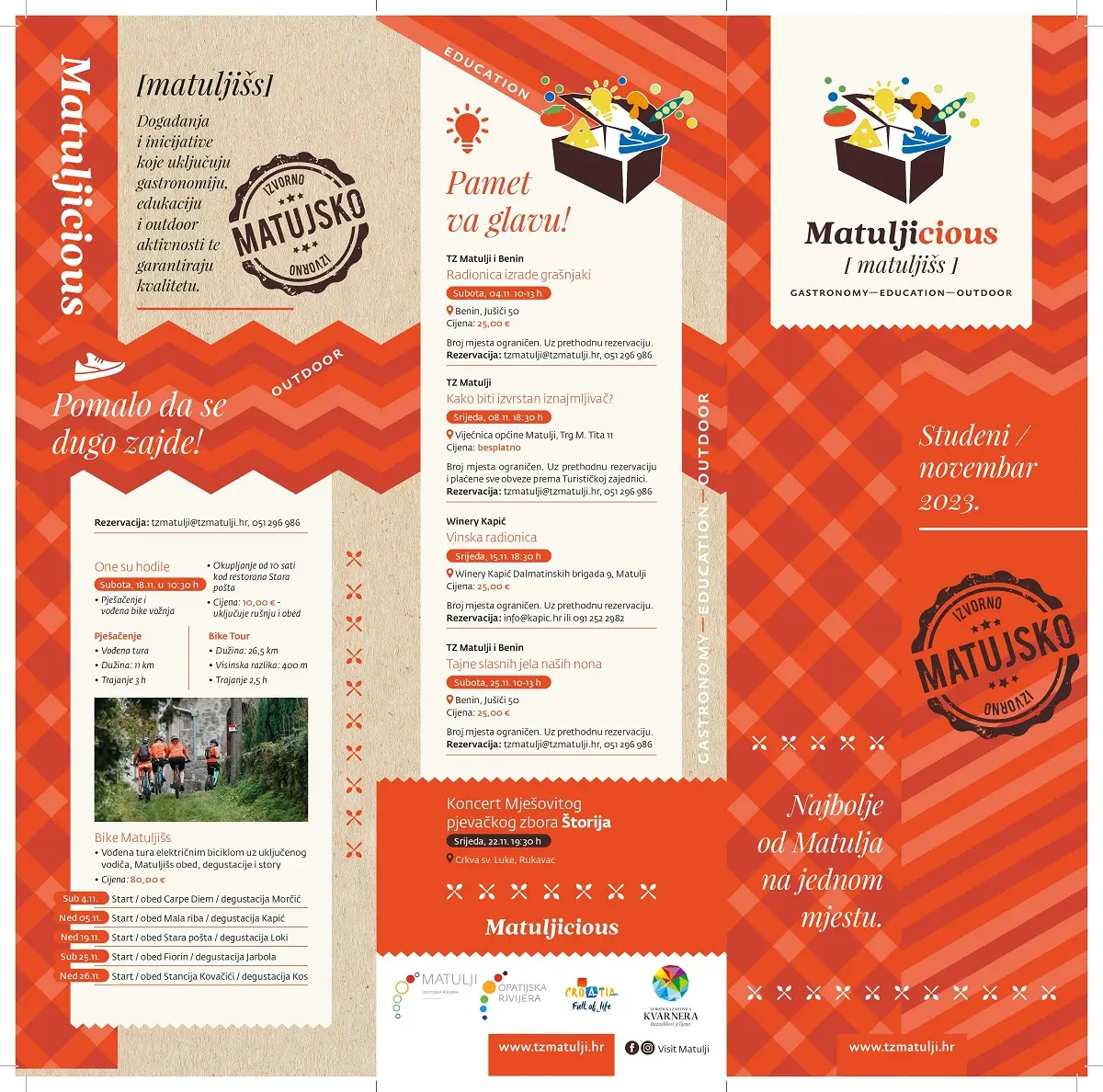 Najzanimljiviji dio ovogodišnjeg trećeg po redu Matuljišsa definitivno je gastronomska ponuda "Za prsti polizat" u sklopu koje se svake nedjelje u ugostiteljskim objektima na području općine Matulji nudi meni po prigodnoj cijeni od 20 do 30 eura